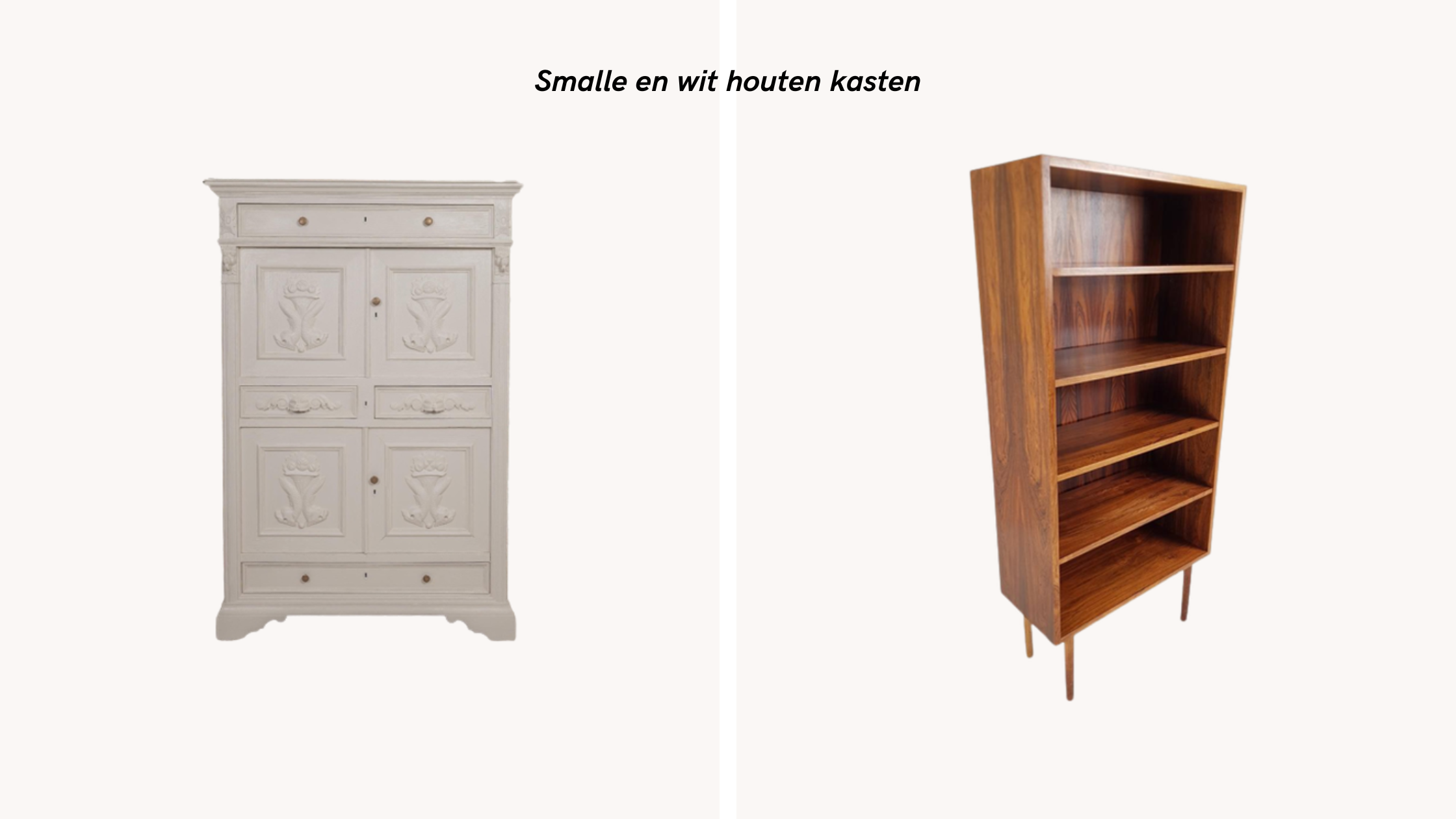 Tegenover het stoere, donkere industriële staat het rustgevende, zachte interieur. Deze rustige stijl gaat hand in hand met een Scandinavisch design. Bij een Scandinavisch interieur zal een smalle houten kast een leuk detail zijn waarmee gespeeld kan worden. Zo kan je drie smalle kasten naast elkaar zetten met enige ruimte ertussen zodat het ruimtelijk en speels oogt. Ondanks het drie losse kasten zijn, zal het rustig ogen vooral als wit wordt gebruikt in combinatie met natuurlijke tinten. De smalle kasten kunnen dan gemaakt zijn van eikenhout aangezien een eikenhouten kast een rustige lichte kleur kan aannemen. Een wit houten kastvan eikenhout of als smalle kast geeft ook een bepaalde rust weer.