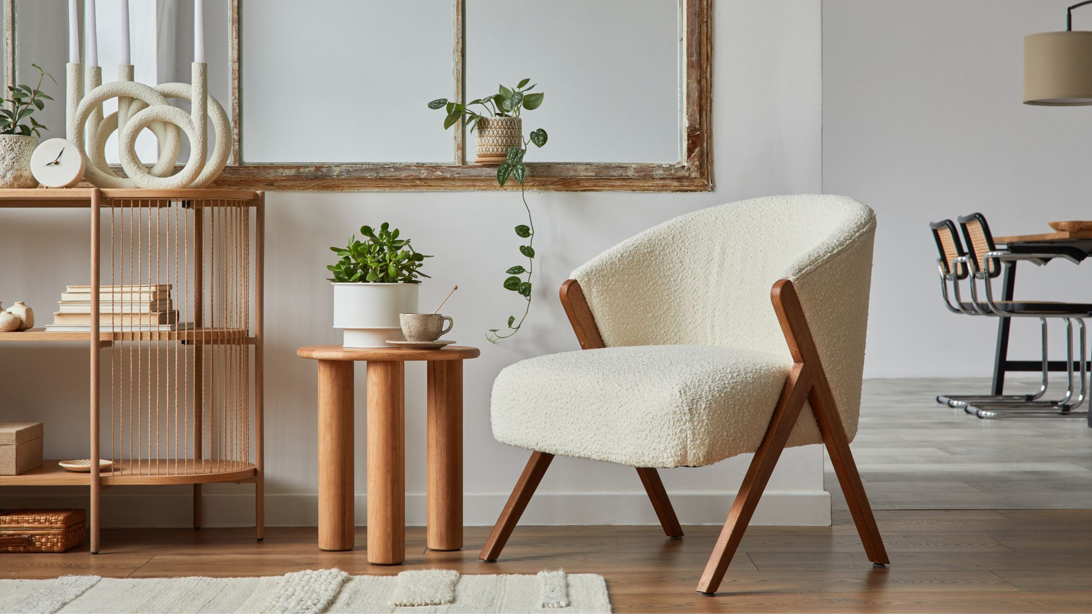 Naast retro bestaan er nog andere stoel stijlen. Zo heb je bijvoorbeeld een Scandinavischdesign stoel die over het algemeen uit heldere en natuurlijke kleuren bestaat met zachtaardige materialen. Zo past de beige stoel met houten frame perfect in een minimalistisch interieur.